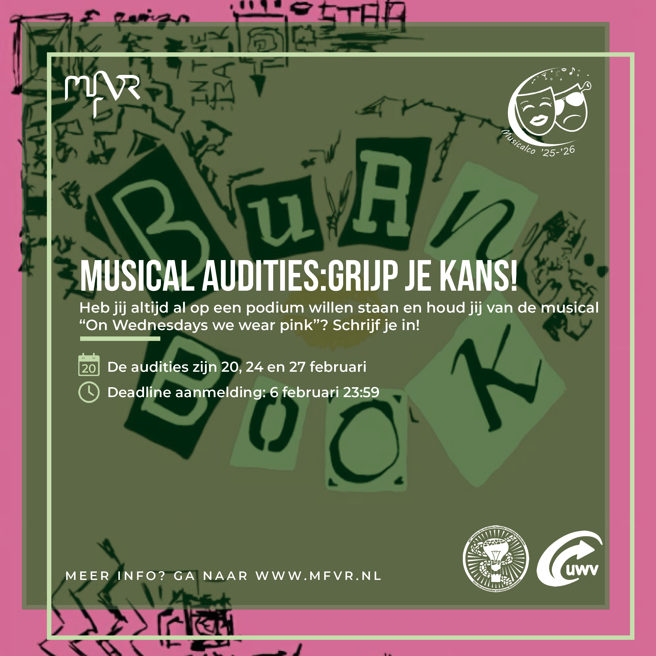 Het is tijd voor de casting call van de vijfde musical van de MFVR, welke dit jaar in het teken staat van onze versie van de musical Mean Girls! Of je nou gaat voor de hoofdrol, bijrol of ensemble, het kan allemaal! Dus meld je vooral aan, want de inschrijvingen zijn vanaf nu geopend op de site!
