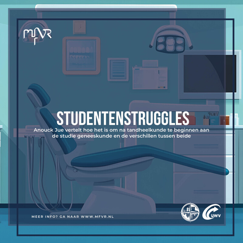 “Ik heb voor geneeskunde inderdaad tandheelkunde gedaan, daarmee ben ik begonnen in 2017. Ook een zesjarige opleiding van drie jaar bachelor en drie jaar master. Hierna ben je dan ook echt tandarts, in tegenstelling tot geneeskunde waar je nog moet specialiseren. Ik vond het een hele leuke opleiding, want het was veel meer praktijk dan hier. Eigenlijk vanaf week 4 van je al aan het boren en dat vond ik heel leuk! Het curriculum is nu wel iets veranderd, maar ik vond het een hele leuke studie met ook hele leuke mensen.”