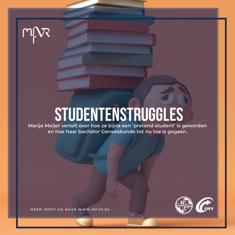 “Ik ben Marije en ik ben 23 jaar. Ik ben in 2019 hier begonnen met de studie Geneeskunde, het is nu 2025 en ik zit nu in mijn derde jaar. Dat heeft dus wat langer geduurd, omdat ik af en toe wat moeite had met mijn tentamens halen.”